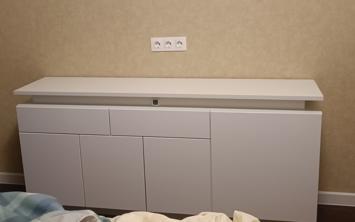 Ящики открываются от нажатия в целом комод смотриться симпатично.