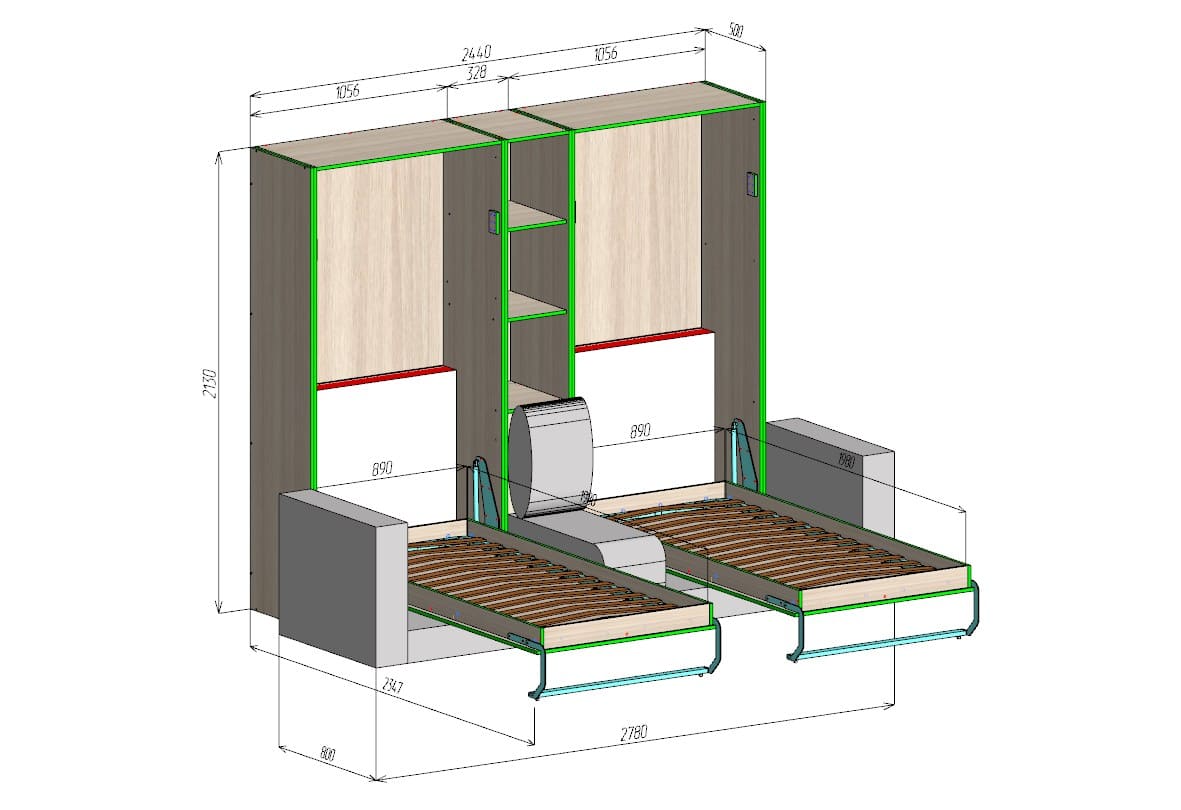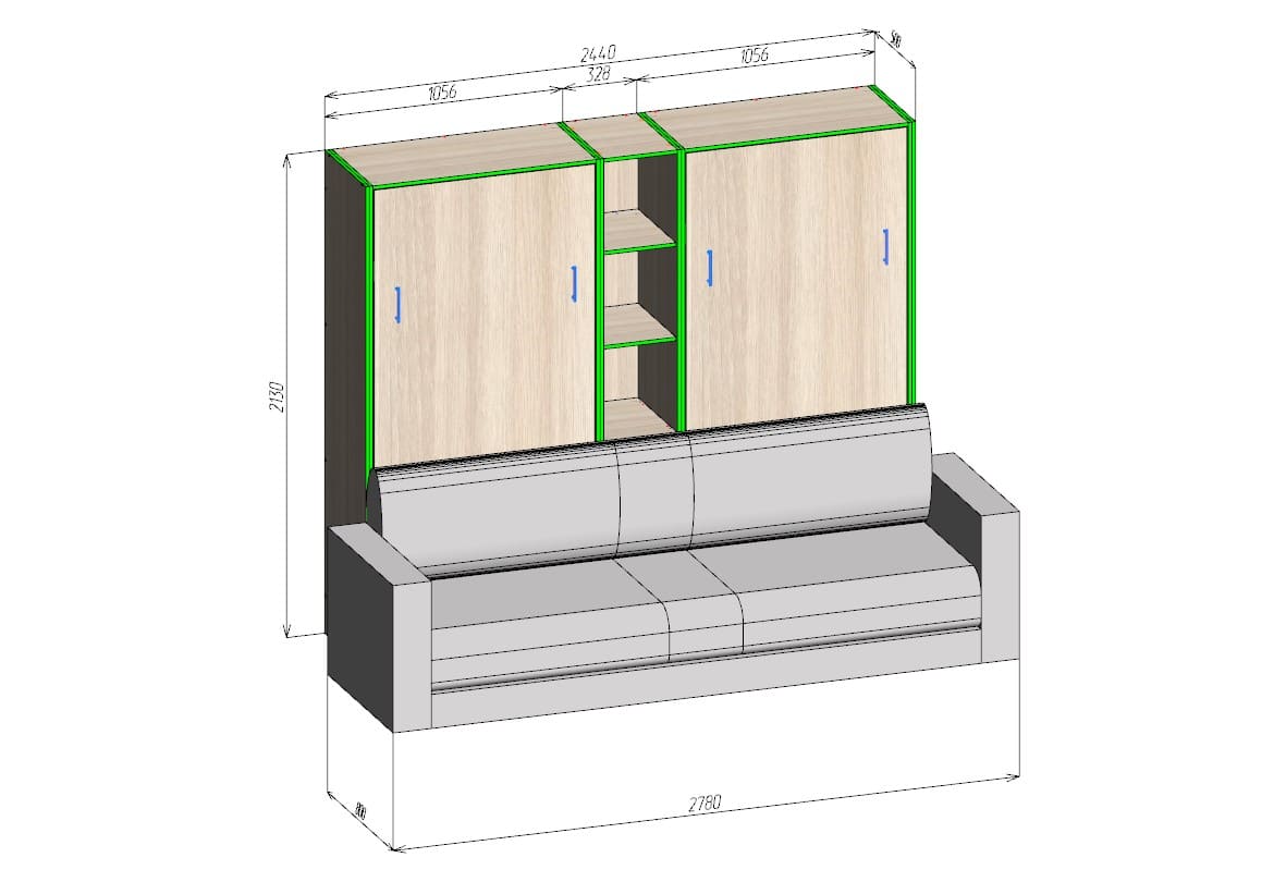 Шкаф-кровать с диваном Челли — идеальное решение для экономии пространства в гостиной или студии.