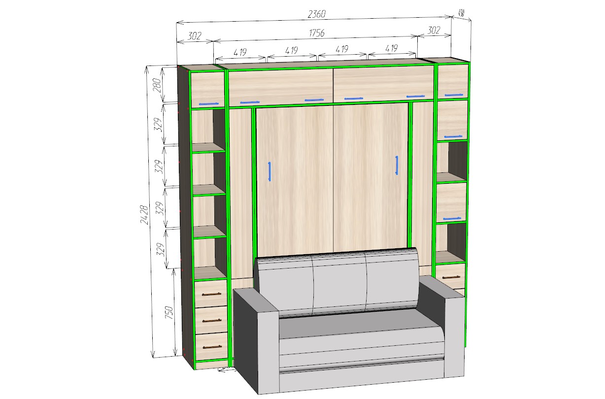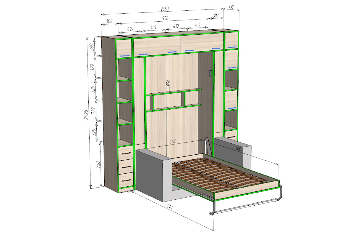 Купить шкаф-кровать с диваном Изи-6 с подбором размера и цвета можно в нашем интернет-магазине.