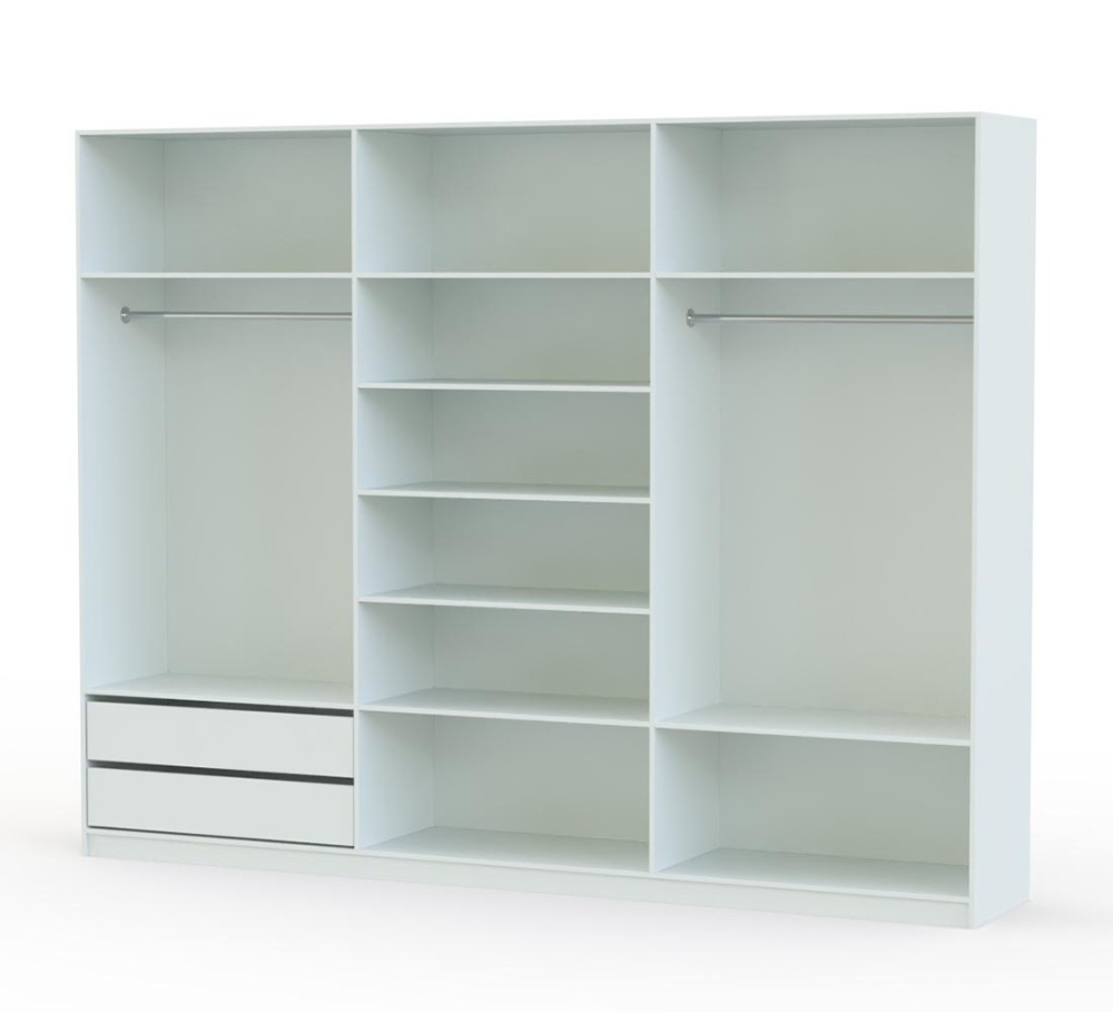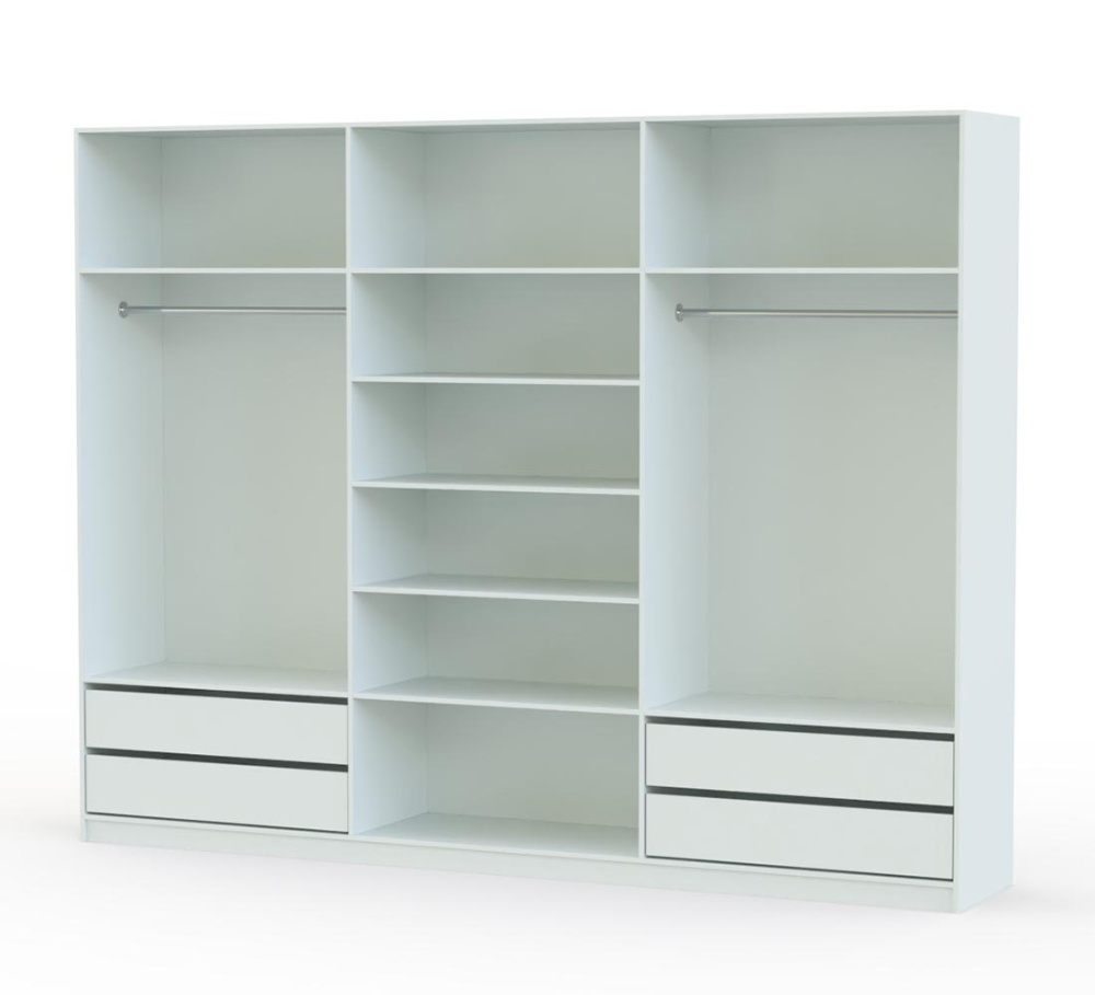 Шкаф Вилладжо – это не просто красивая оболочка, но и продуманная система хранения. Вы сами выбираете внутреннее наполнение, идеально соответствующее вашим потребностям. Полки, выдвижные ящики, штанги для одежды, – все это и многое другое можно заказать по индивидуальному проекту. Максимально используйте каждый сантиметр пространства!