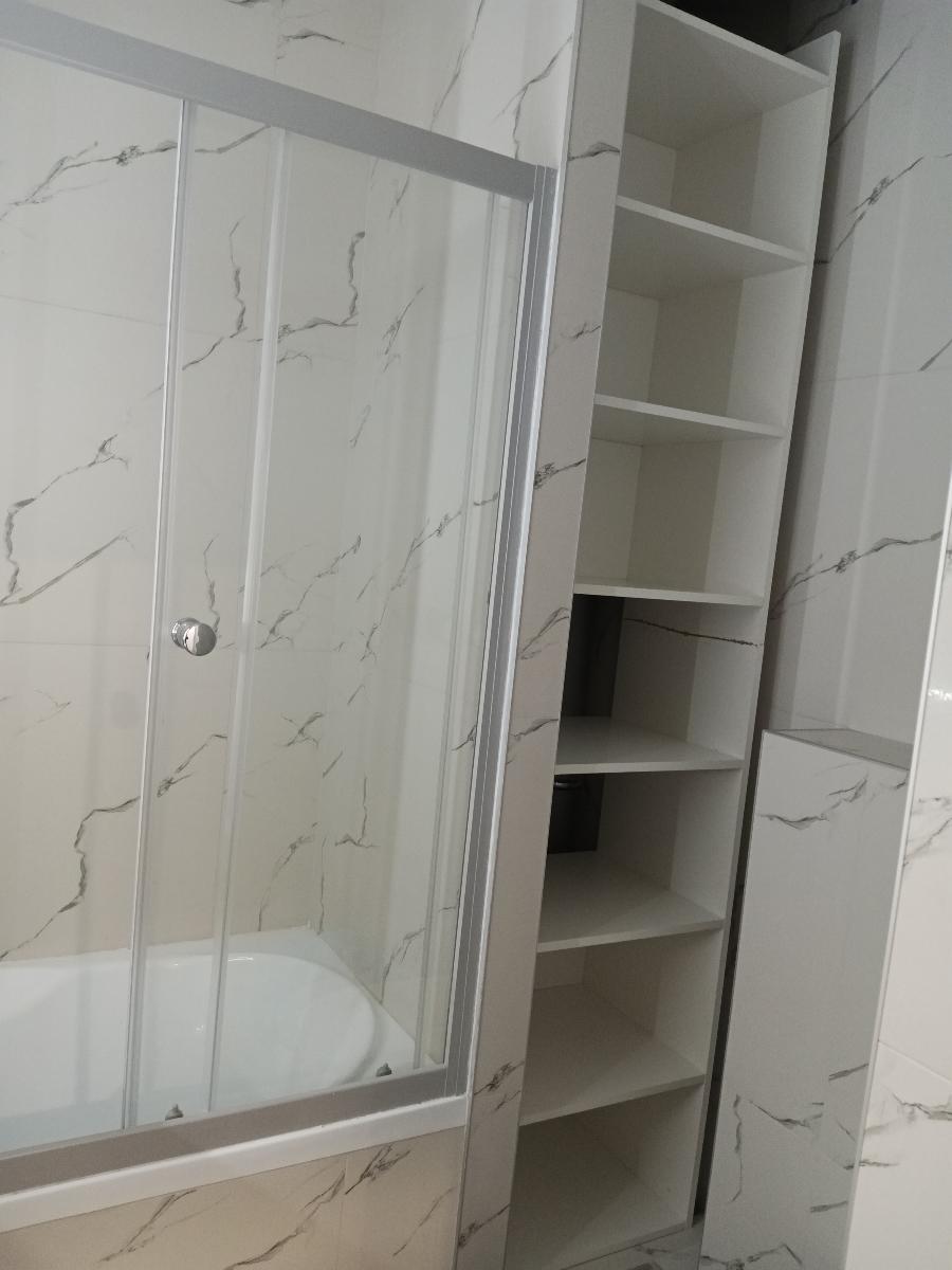 Узкий открытый формат с неглубокими полками станет отличной альтернативой шкафу, особенно в малогабаритной квартире.