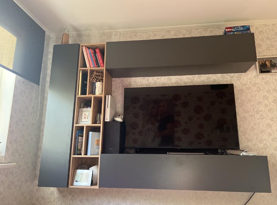 Стенка в гостиную Комфиво выполнена в современном стиле и отлично подойдет для оформления компактной и функциональной ТВ-зоны. Модель сочетает в себе навесные и закрытые модули, открытые ниши и удобные полки, благодаря чему выглядит легко и при этом обеспечивает достаточно места для хранения. Такая композиция помогает организовать пространство гостиной аккуратно и без визуальной перегрузки.
