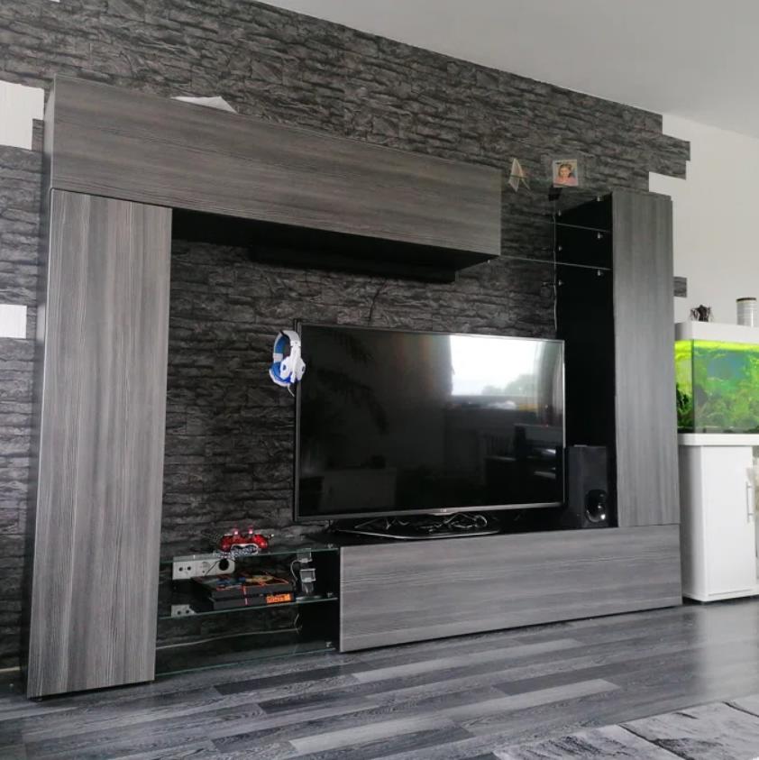 Стенка смотрится вполне стильно, приятный цвет, собрали быстро