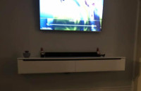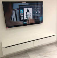 Тумба может быть изготовлена в нужных размерах, что позволяет подобрать оптимальный вариант под телевизор и особенности помещения. Кромка ПВХ 0,4 мм защищает детали от повреждений и придает изделию аккуратный завершенный вид. При необходимости возможно выполнение элементов с кромкой ПВХ 2 мм. Срок службы тумбы составляет от 10 лет и более при бережной эксплуатации.