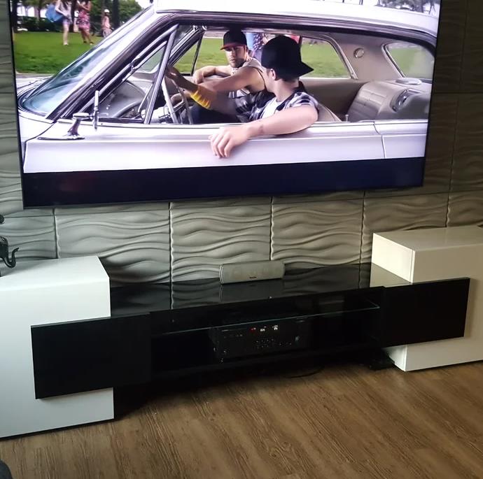 Два вместительных боковых отделения: Каждое из них оснащено распашными дверцами, надежно скрывающими содержимое. Размеры отделений рассчитываются индивидуально под ваш заказ, гарантируя максимальную вместимость для вашей техники, дисков, приставок и прочих мелочей.