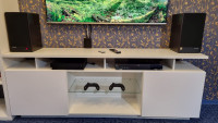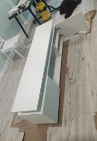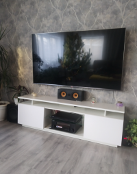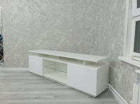 Хорошая тумба под тв, на одном углу маленькая царапина. За такие деньги норм. Все комплектующие есть.
