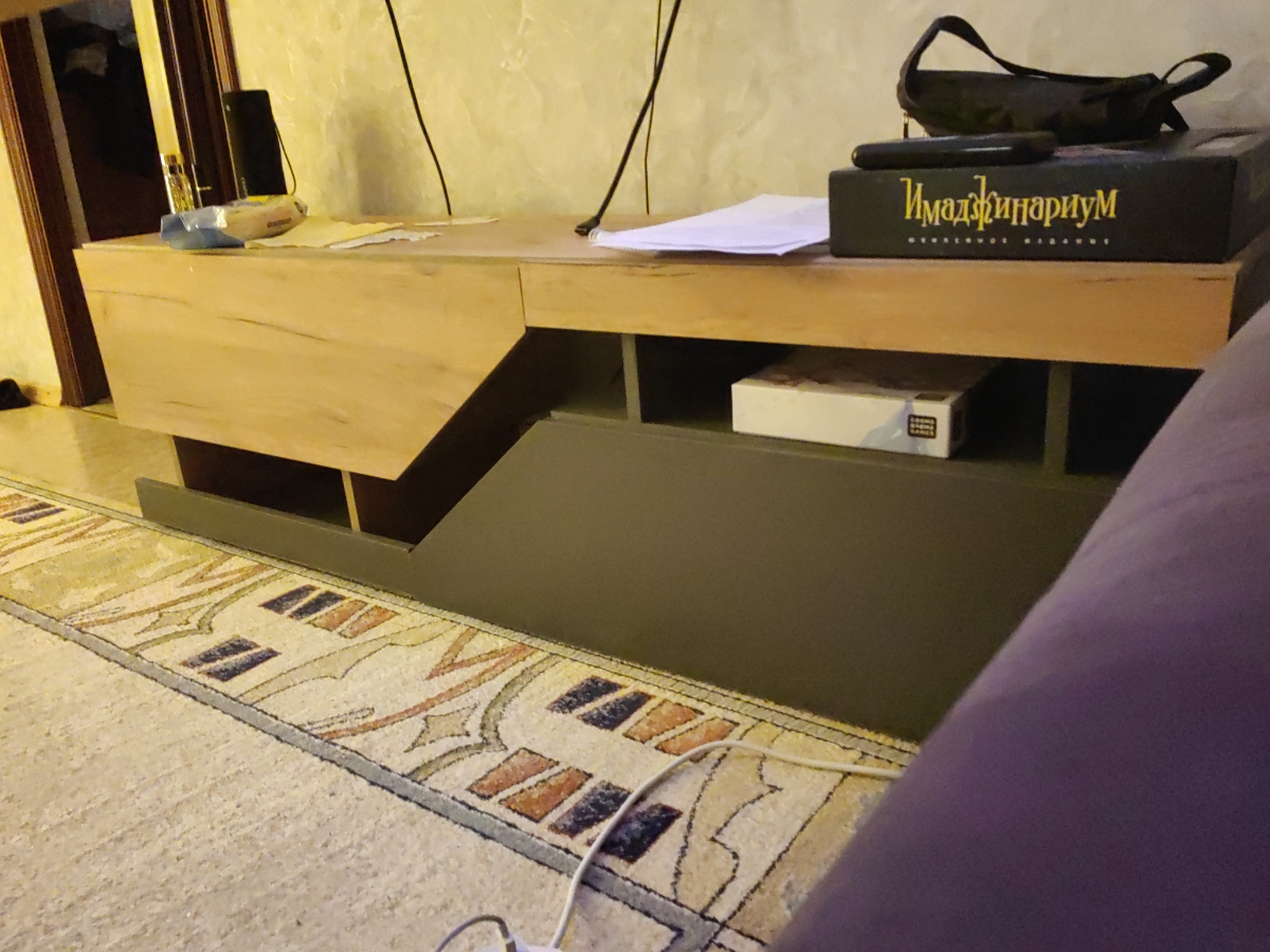 Конструкция оснащена двумя распашными дверцами, за которыми расположены вместительные отделения для хранения техники, кабелей, пультов, игровых аксессуаров, документов и других бытовых мелочей. Закрытые секции позволяют убрать все лишнее с виду и сделать пространство визуально более аккуратным. Продуманное внутреннее устройство также обеспечивает удобное размещение мультимедийных устройств.