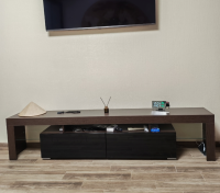 Конструкция продумана для повседневного комфорта. На просторной столешнице удобно разместится телевизор, а в двух выдвижных ящиках можно хранить пульты, документы, кабели, игровые аксессуары и другие мелочи, которые хочется держать под рукой, но вне поля зрения. Тумба помогает поддерживать порядок и делает пространство визуально более аккуратным.