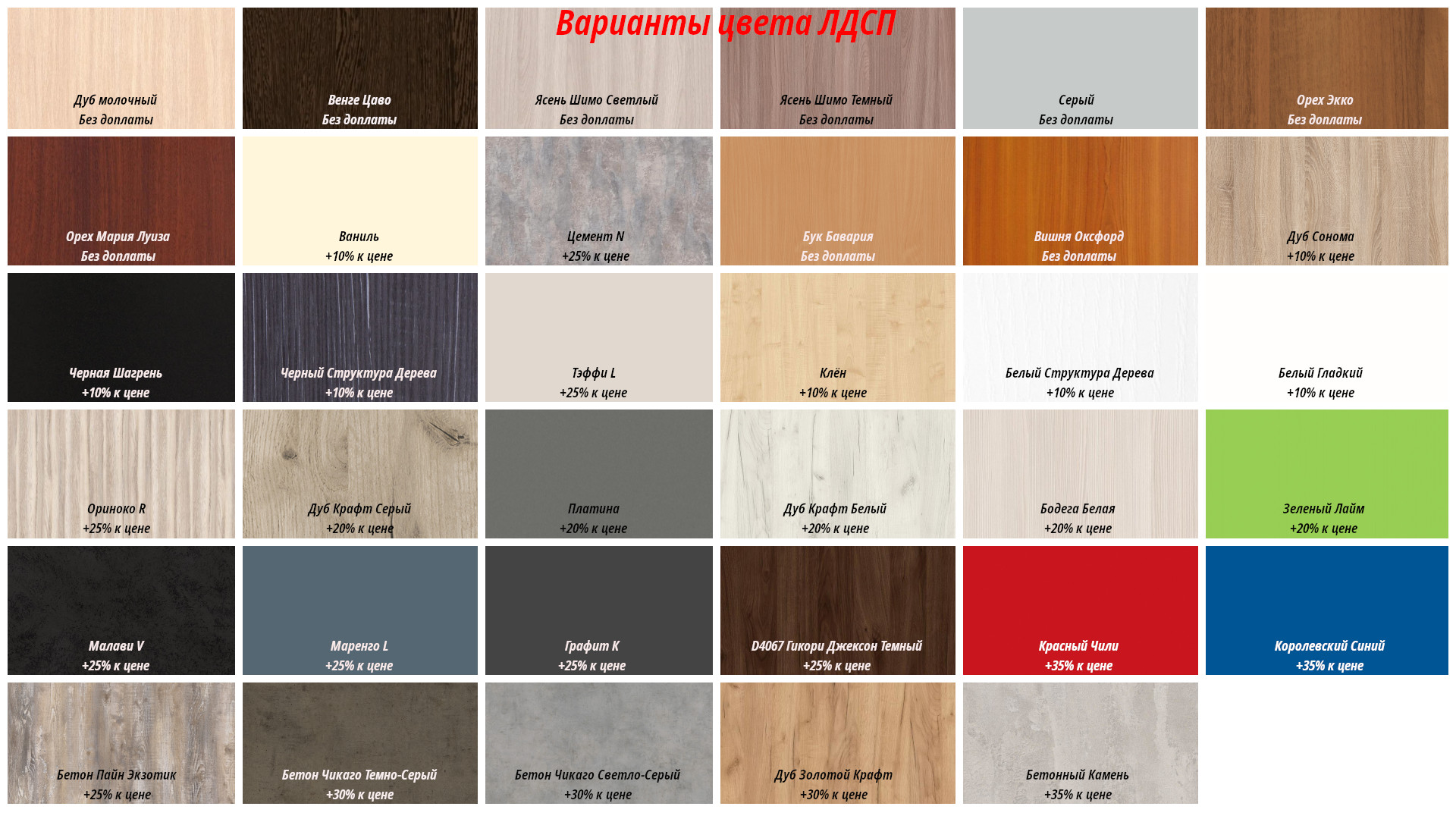 Выберите цвет, который идеально впишется в ваш интерьер. В нашей палитре представлены десятки оттенков – от классической белой эмали до роскошного темного дерева, от нежных пастельных тонов до насыщенных, ярких цветов. Мы работаем с высококачественными материалами, гарантирующими долговечность и износостойкость изделия.